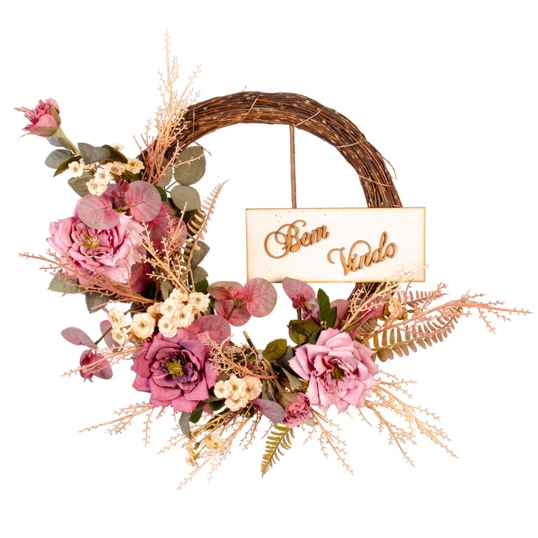 GUIRLANDA BEM VINDO 35 CM ROSA COM MIRTA
