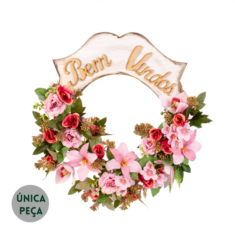 GUIRLANDA BEM VINDOS 35 CM ORQUÍDEA BOTÃO E COMPLEMENTOS