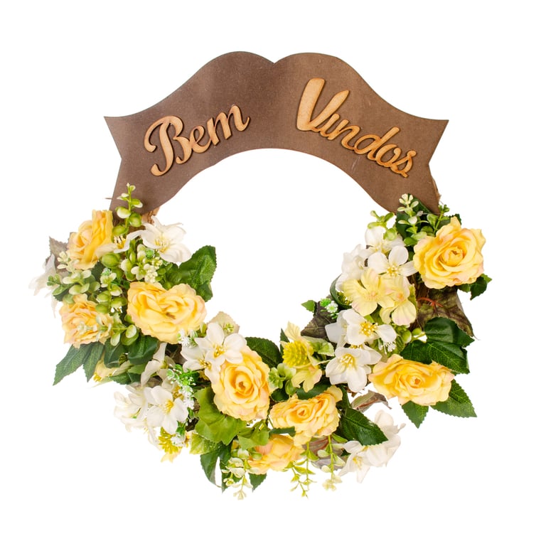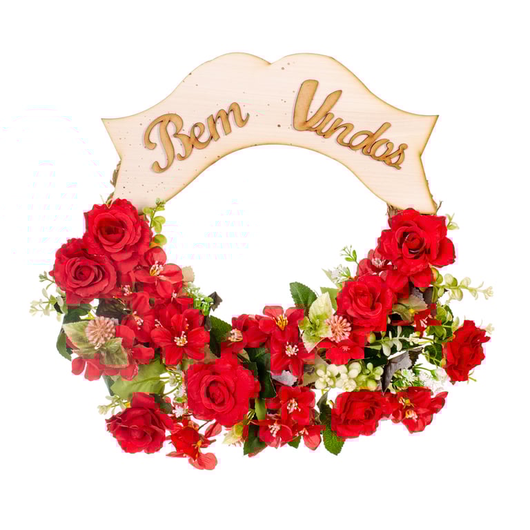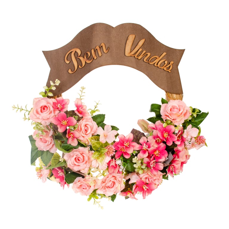 GUIRLANDA BEM VINDOS 35 CM ROSA COM AZALEIA