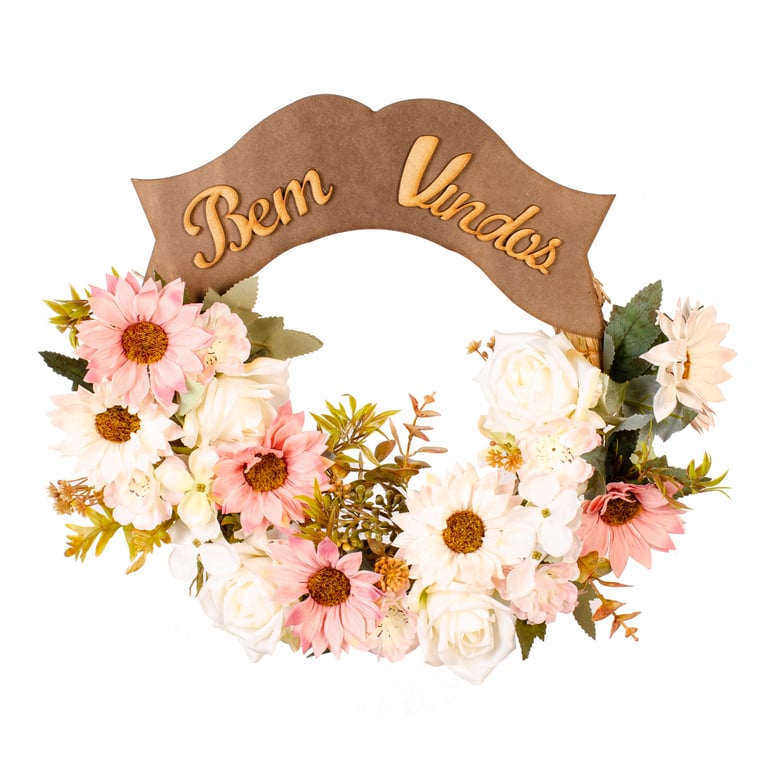 GUIRLANDA BEM VINDOS 35 CM ROSA E GÉRBERA