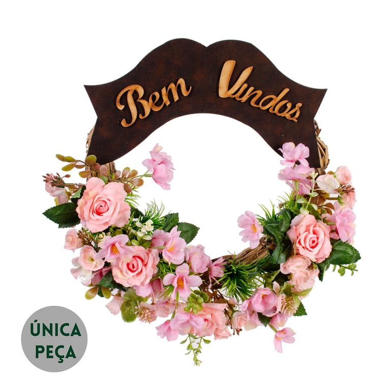 GUIRLANDA BEM VINDOS 36 CM ROSA E BOTÃO COM MARGARIIDA