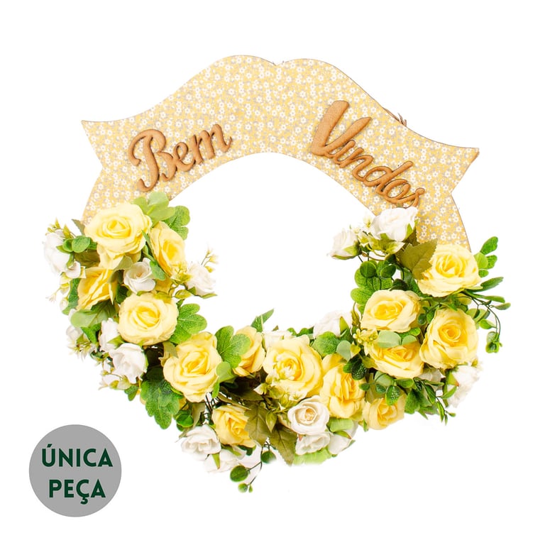 GUIRLANDA BEM VINDOS 43 CM ROSA AMARELA E PEÔNIA BRANCA