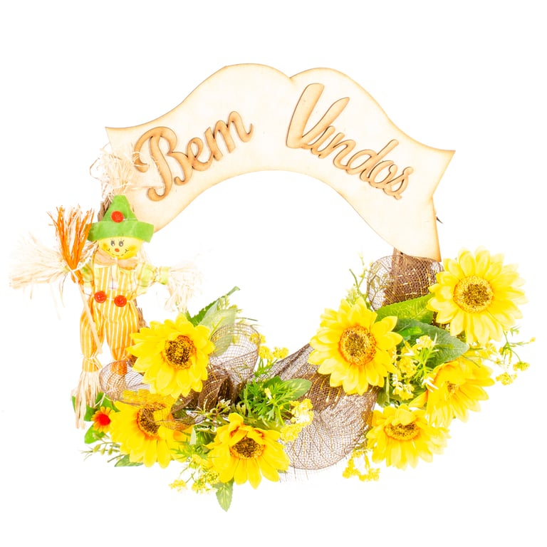 GUIRLANDA BEM VINDOS GIRASSOL 44 CM COM ESPANTALHO E LAÇO