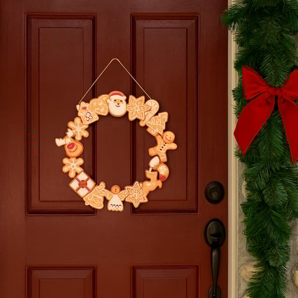 GUIRLANDA FELIZ NATAL 29X30 CM BISCOITOS MADEIRA