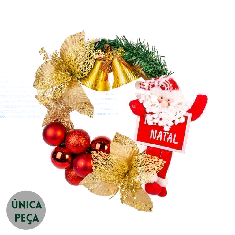 GUIRLANDA FELIZ NATAL 30 CM PAPAI NOEL COM BOLAS FLORES E SINOS