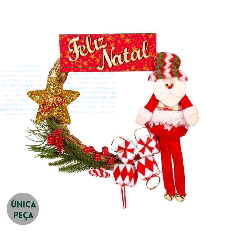 GUIRLANDA FELIZ NATAL 35 CM PAPAI NOEL COM PRESENTES E ESTRELA