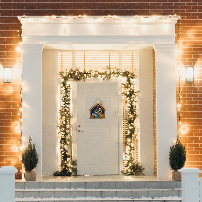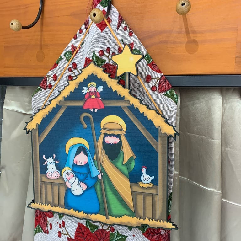 GUIRLANDA NATAL 31,5X29 CM PRESÉPIO MADEIRA