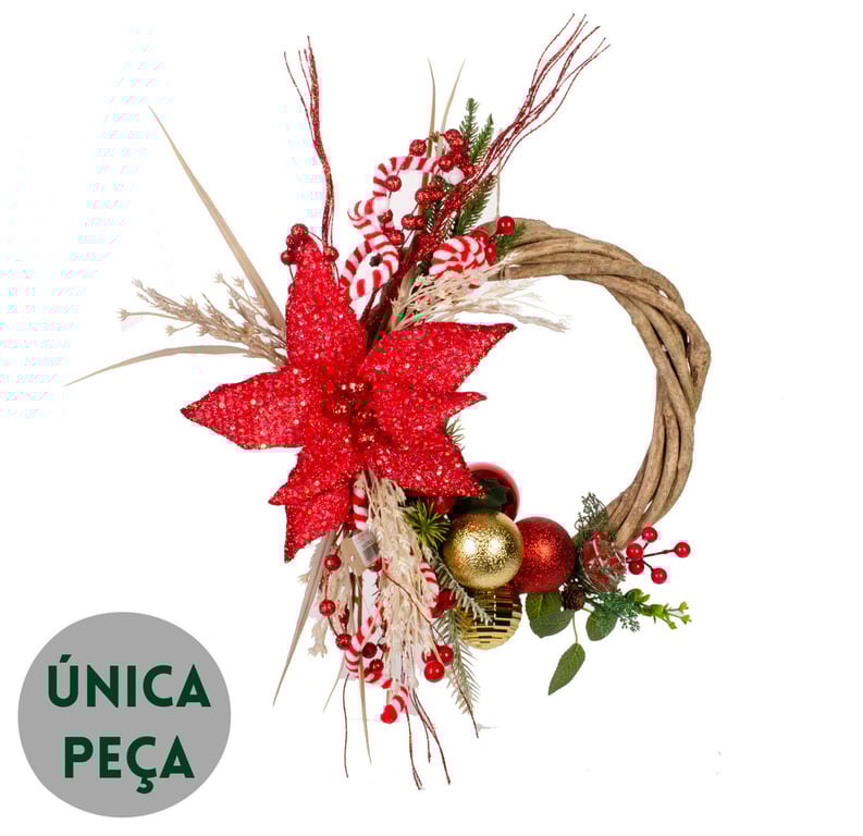 GUIRLANDA NATAL 38 CM FLOR LANTEJOULAS