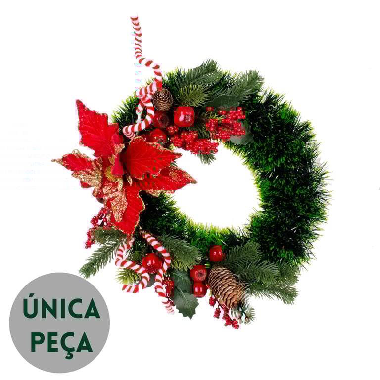 GUIRLANDA NATAL 38 CM FLOR VELUDO COM PINHAS E ROMÃS