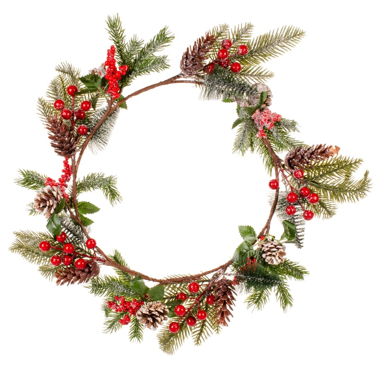 GUIRLANDA NATAL 50 CM PINHAS E CEREJAS COM RAMOS NEVADOS