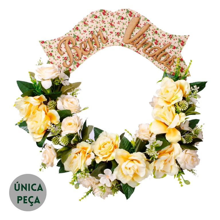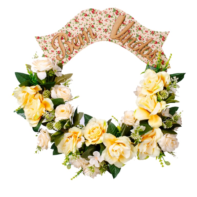 GUIRLANDA ROSAS E COMPLEMENTO 42 CM COM PLACA DE BEM VINDOS
