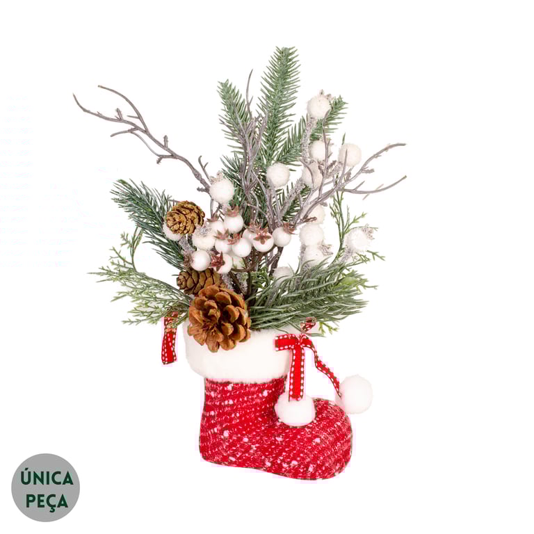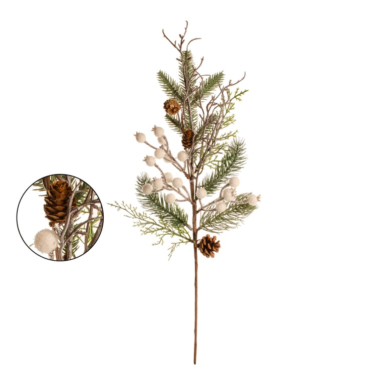 HASTE CIPRESTE 60 CM COM ROMÃS NEVADAS E PINHAS