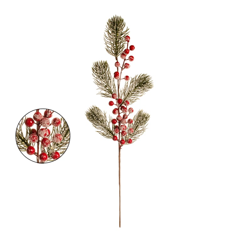 HASTE CIPRESTE 60 CM COM SEMENTES VERMELHAS NEVADAS