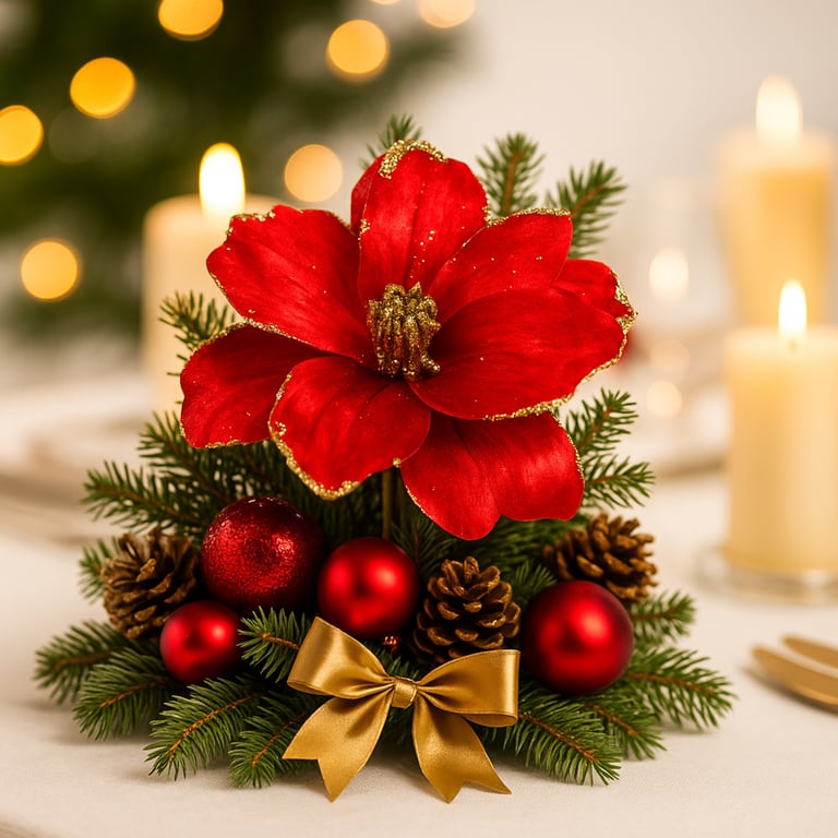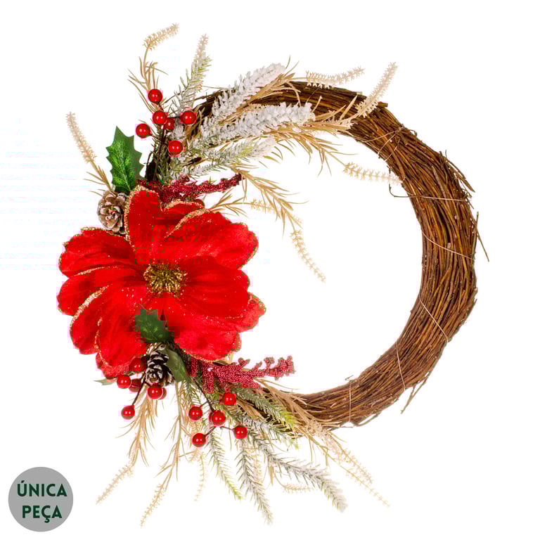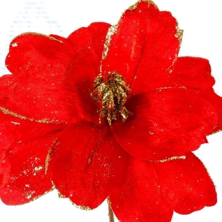 HASTE FLOR NATAL 24 CM MAGNÓLIA VERMELHA BORDA GLITTER