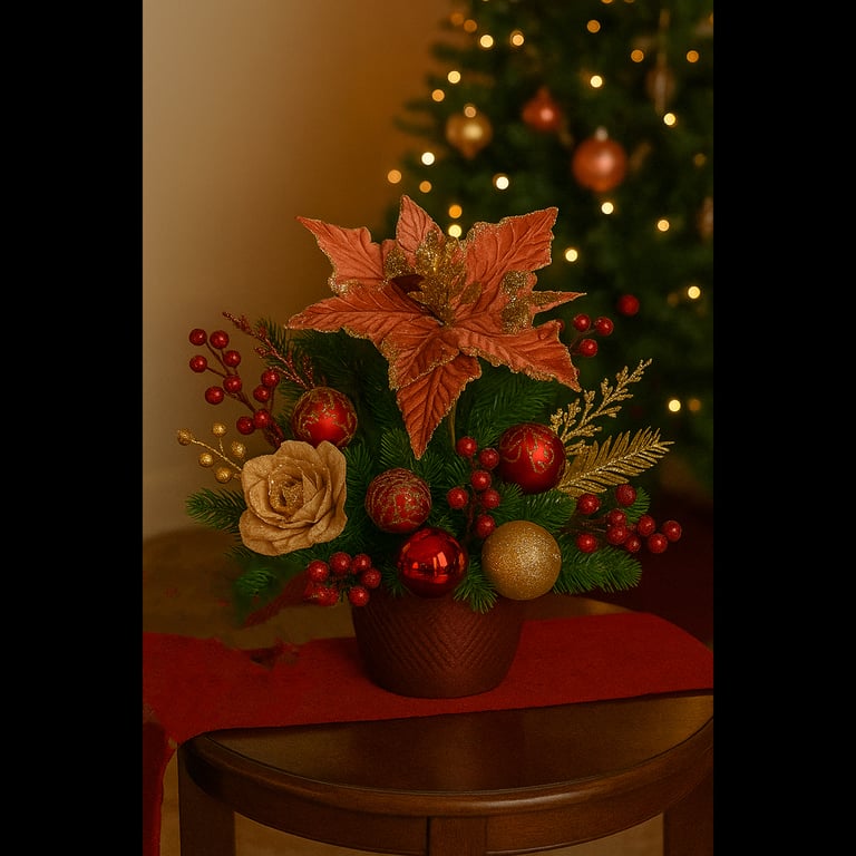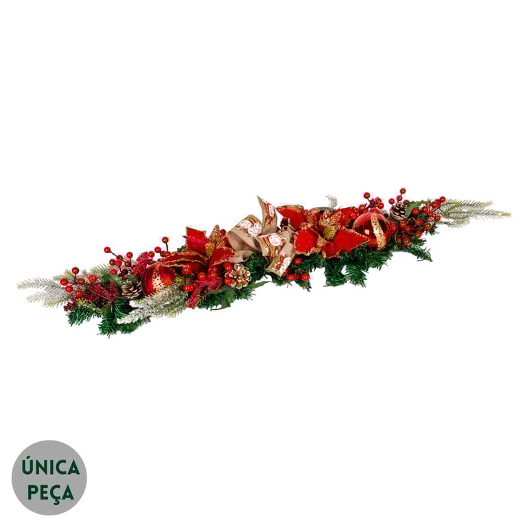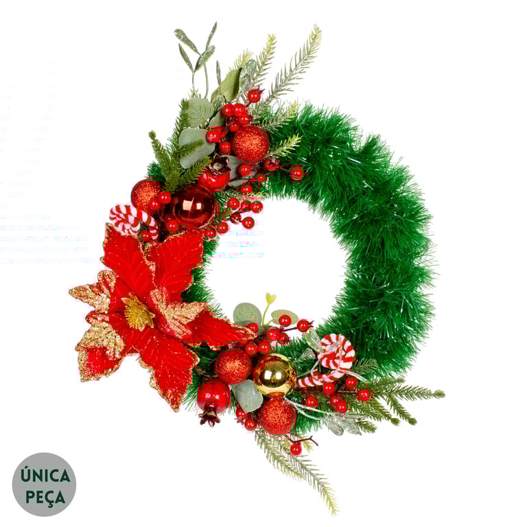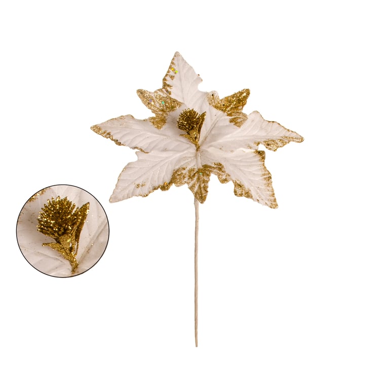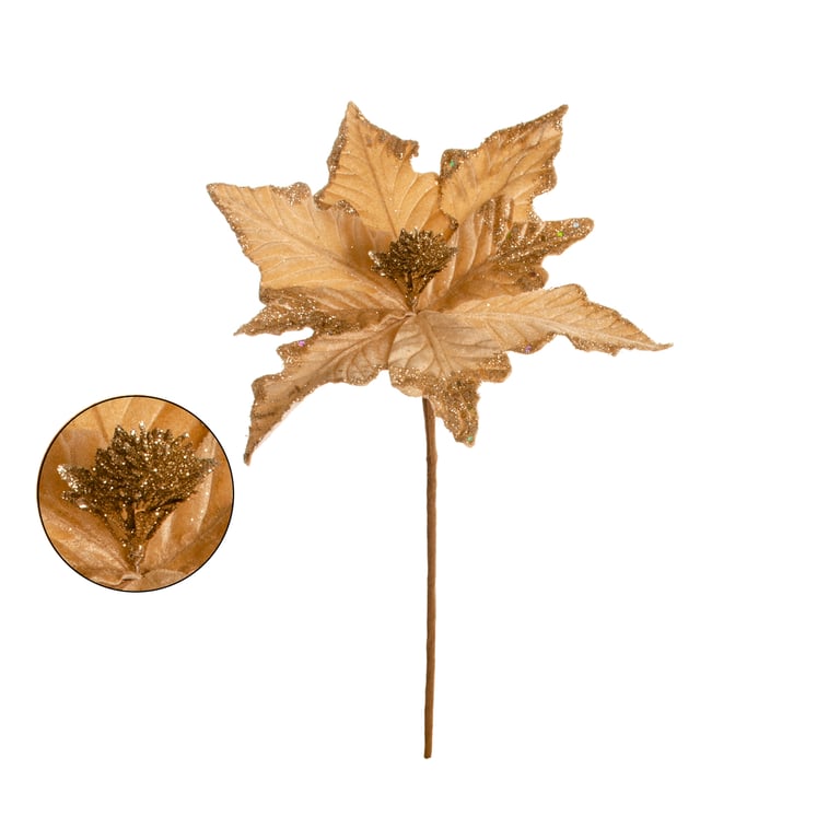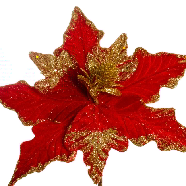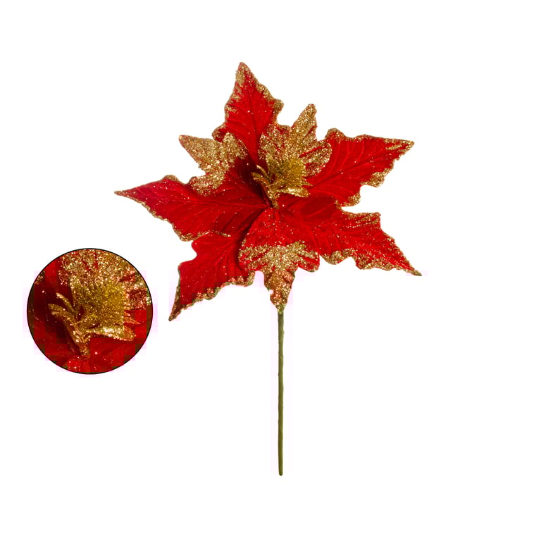 HASTE FLOR NATAL 34 CM POINSÉTIA VELUDO BORDA E MIOLO GLITTER