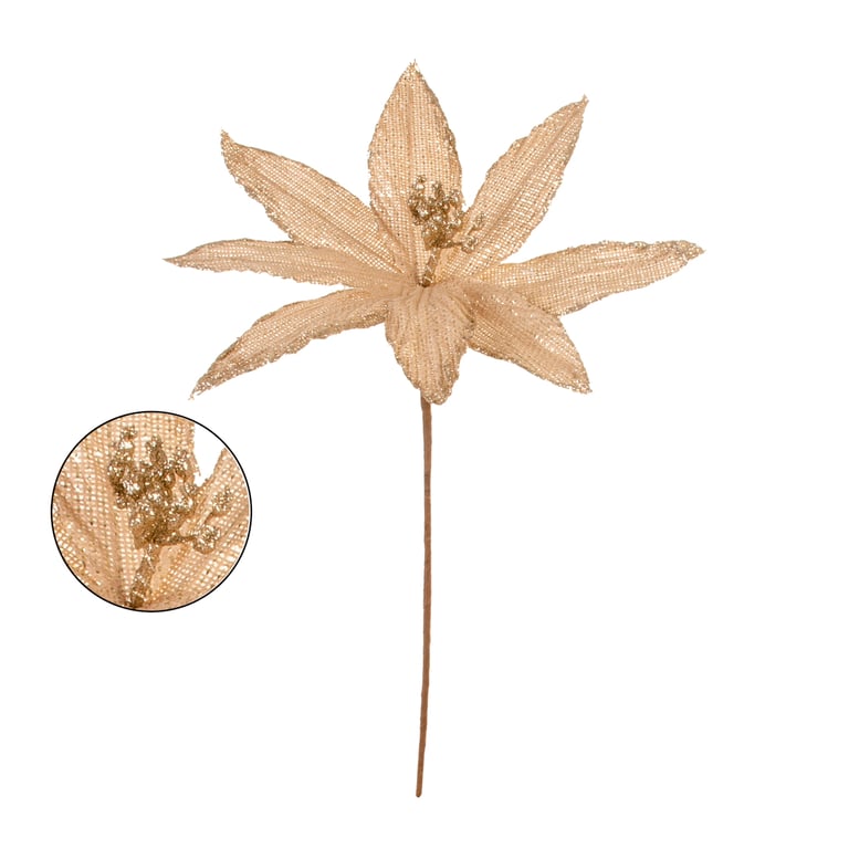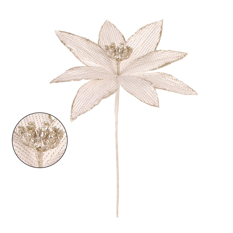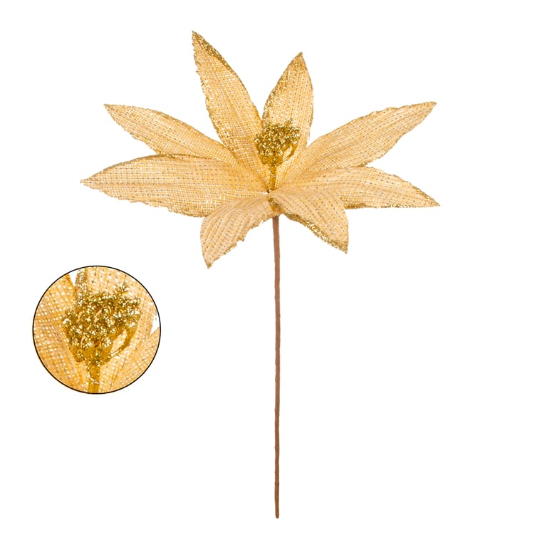 HASTE FLOR NATAL 46 CM POINSÉTIA TELADA BORDA E MIOLO GLITTER