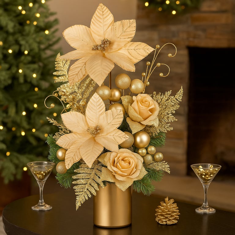 HASTE FLOR NATAL 55 CM POINSÉTIA BORDA E MIOLO GLITTER