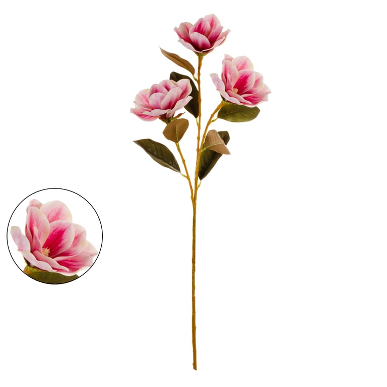 HASTE MAGNÓLIA 3 FLORES 80 CM TOQUE REAL