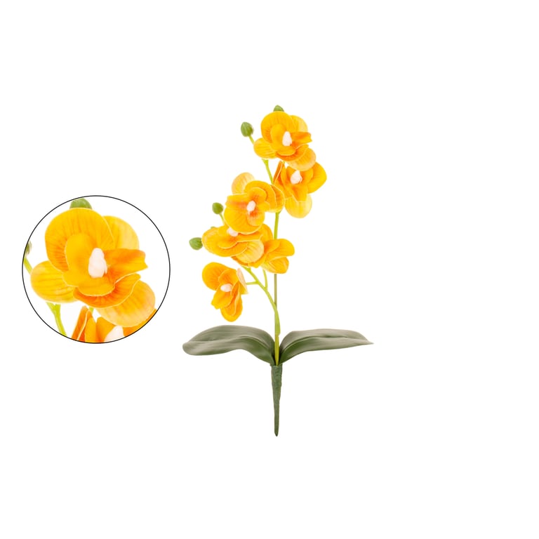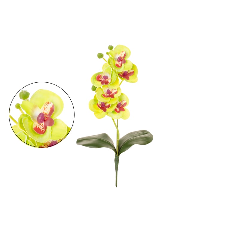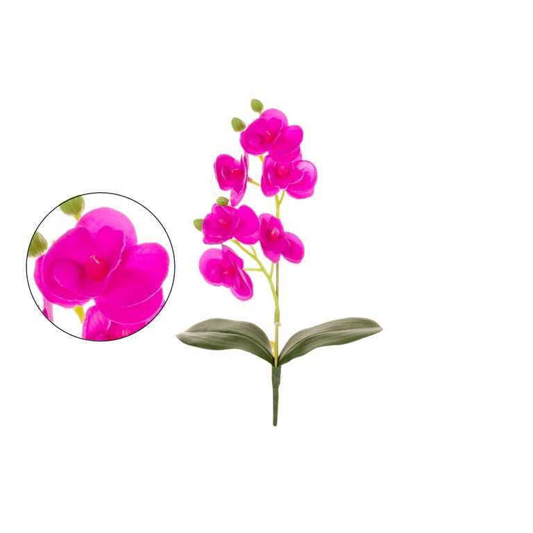 HASTE ORQUÍDEA 6 FLORES 24 CM SILICONE COM FOLHAS FALENÓPILIS