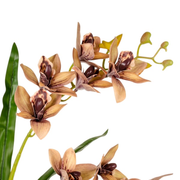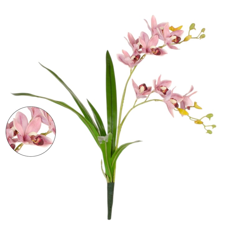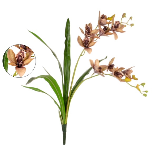 HASTE ORQUÍDEA SILICONE 9 FLORES 60 CM COM FOLHAS CYMBIDIUM