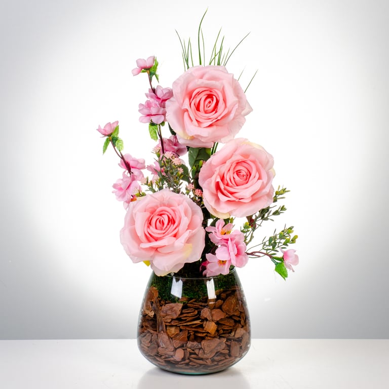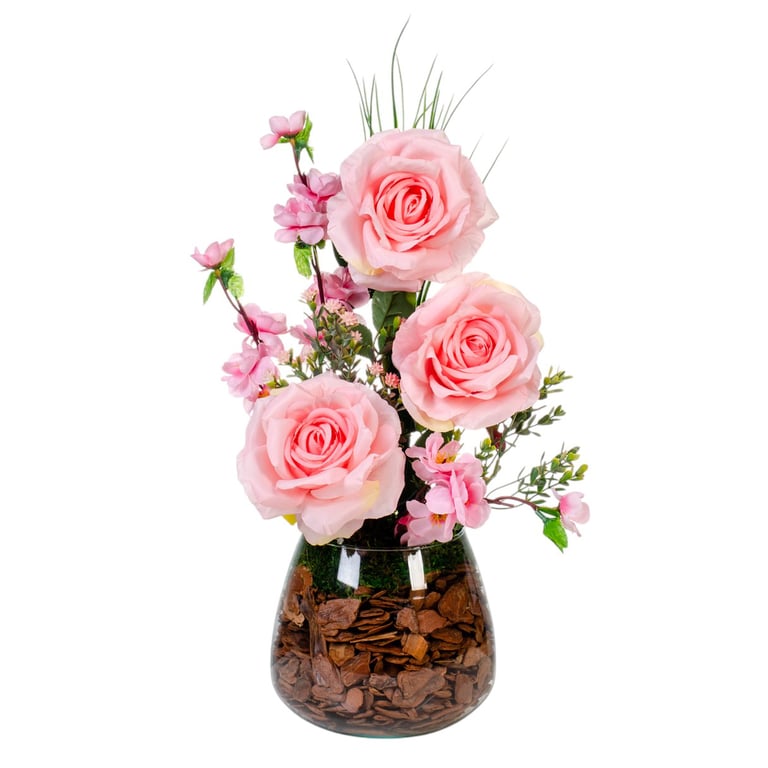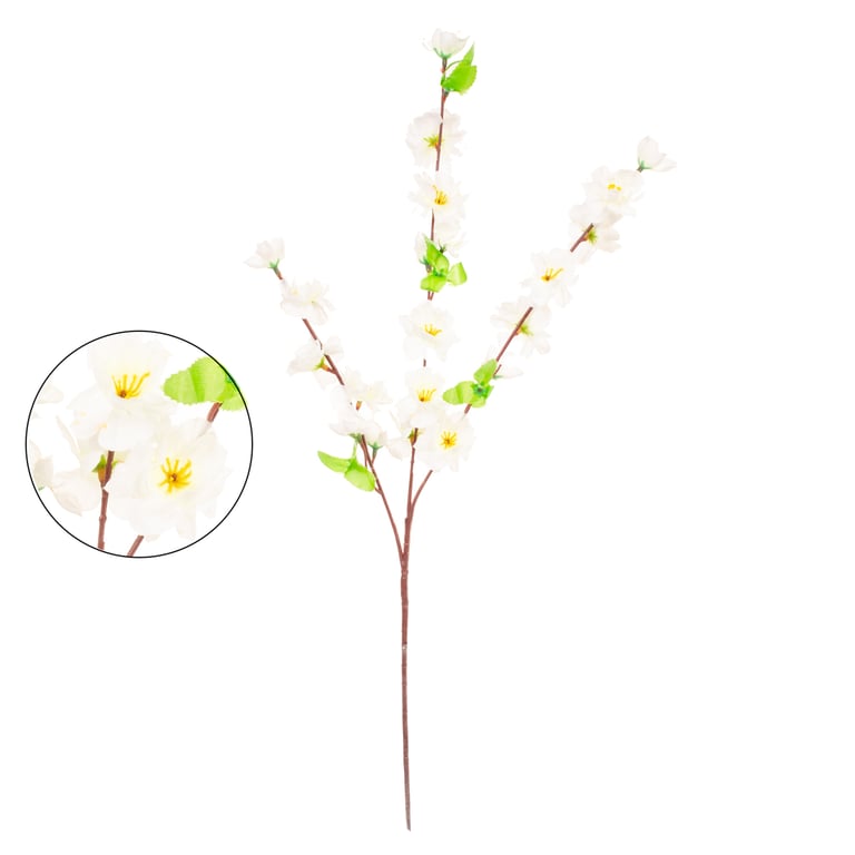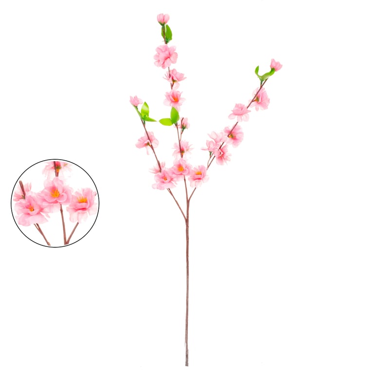 HASTE PESSEGUEIRO / CEREJEIRA X3 20 FLORES 65 CM FOLHAS VERDES