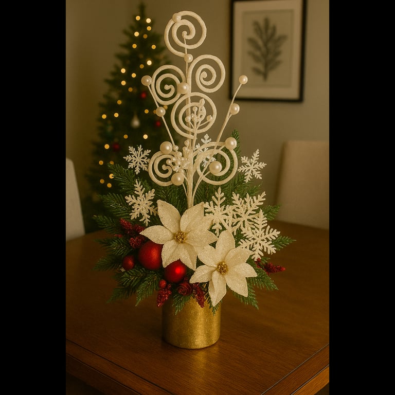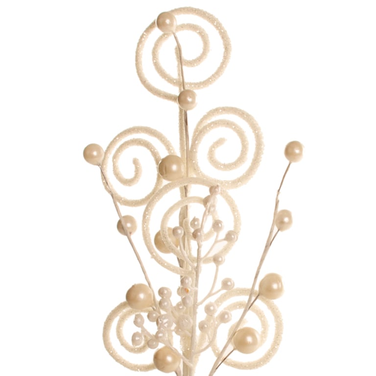 HASTE SEMENTES PEROLIZADAS 40 CM BRANCA COM HASTES ONDULADAS GLITTER