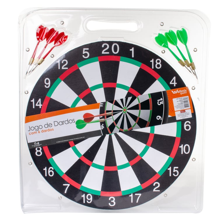 Observações CONTÉM UM TABULEIRO E 6 DARDOS.POSSUI GANCHO PARA PENDURAR.JOGO PARA ADULTOS POR POSSUIR PONTAS AFIADAS.JOGO 2 EM 1, JOGO DE DARDOS PADRÃO E JOGO DE DARDOS COM PONTUAÇÃO.