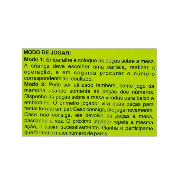 Sugestões de uso ESTIMULA RACIOCÍNIO LÓGICO, DEDUÇÃO, MEMÓRIA E ATENÇÃO, PERCEPÇÃO VISUAL.