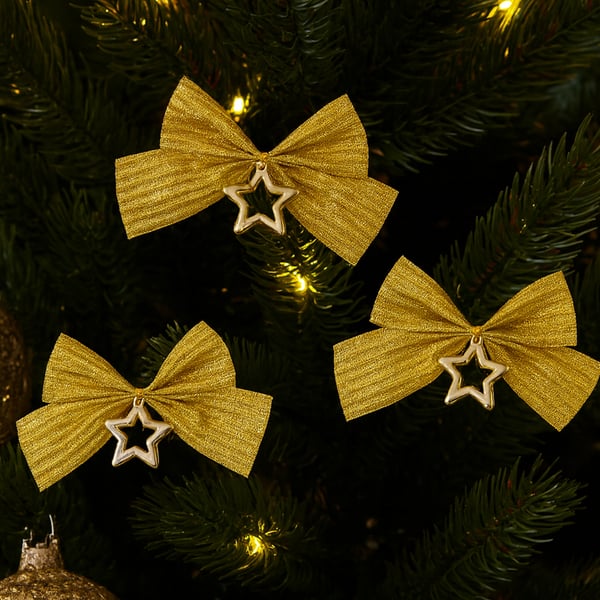 LAÇO TECIDO 10X10 CM 3 PEÇAS COM PENDENTE ESTRELA METALIZADO