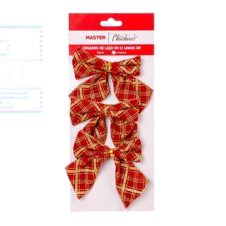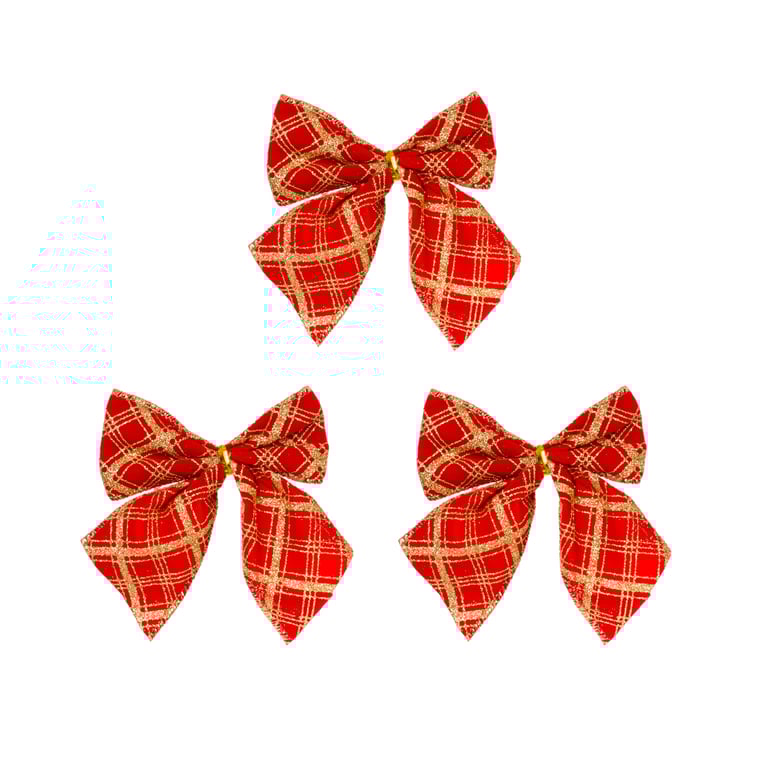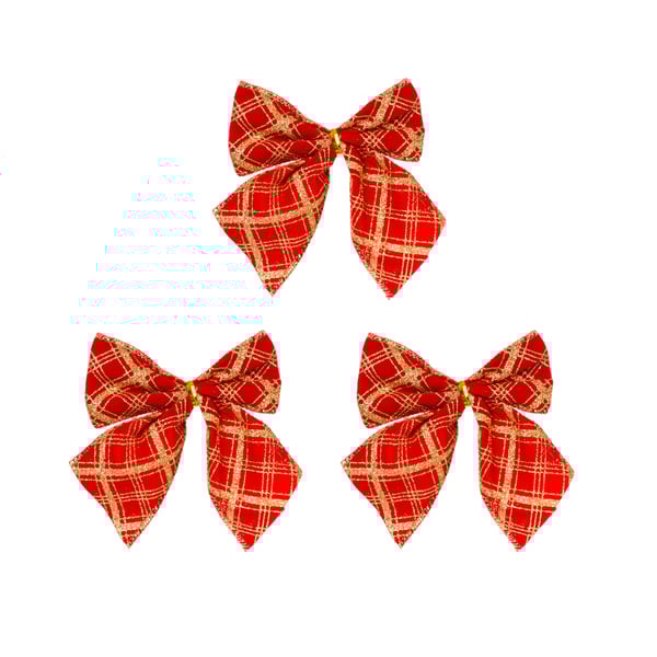 LAÇO VELUDO 9X10 CM 3 PEÇAS VERMELHO XADREZ COM GLITTER