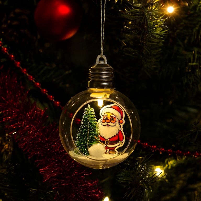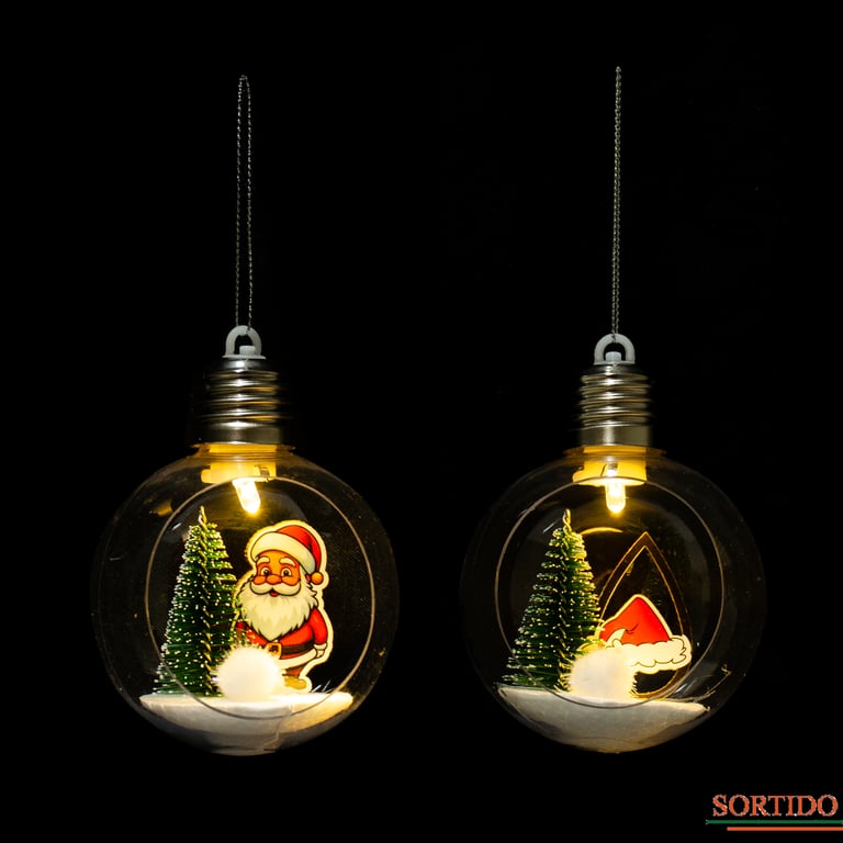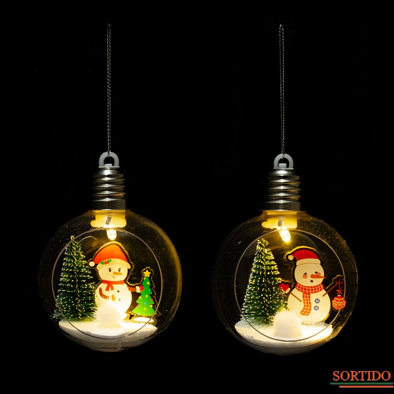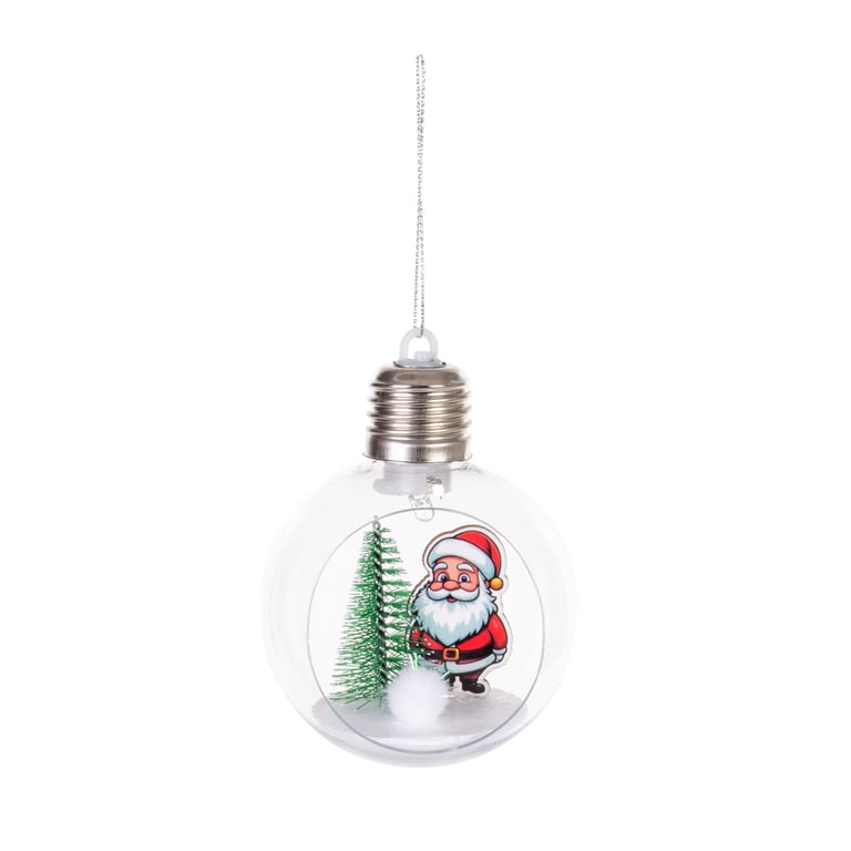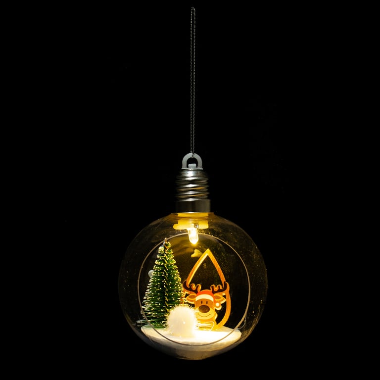 LÂMPADA DECORADA NATAL 1 LED BRANCO QUENTE BOLA 10X8 CM