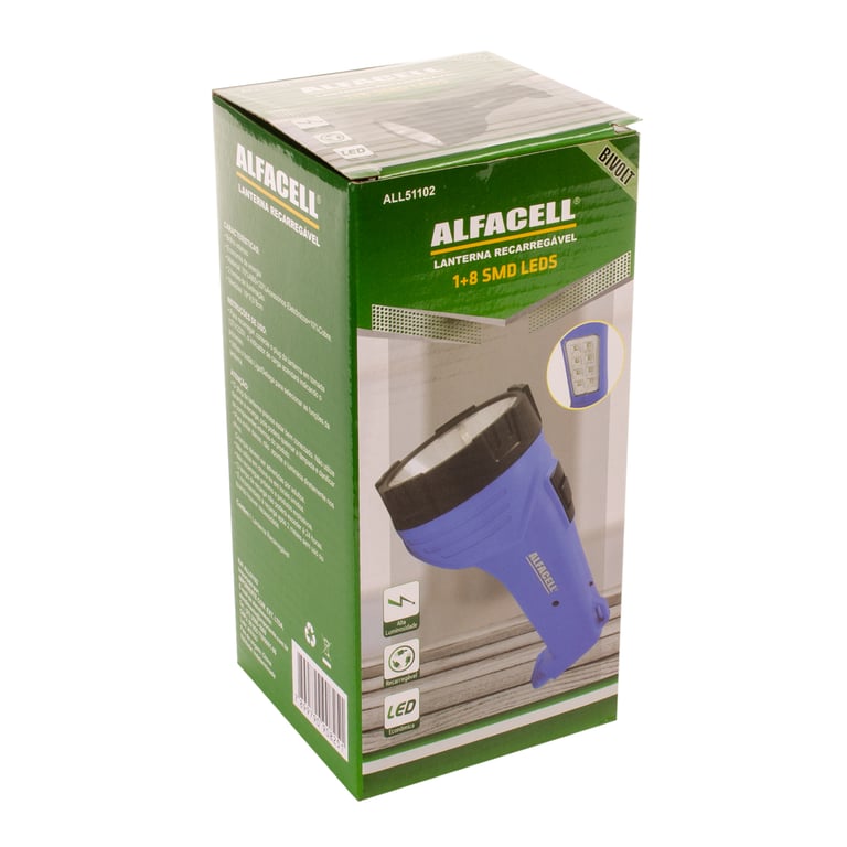LANTERNA 1+8 LEDS 19X9,5 CM RECARREGÁVEL