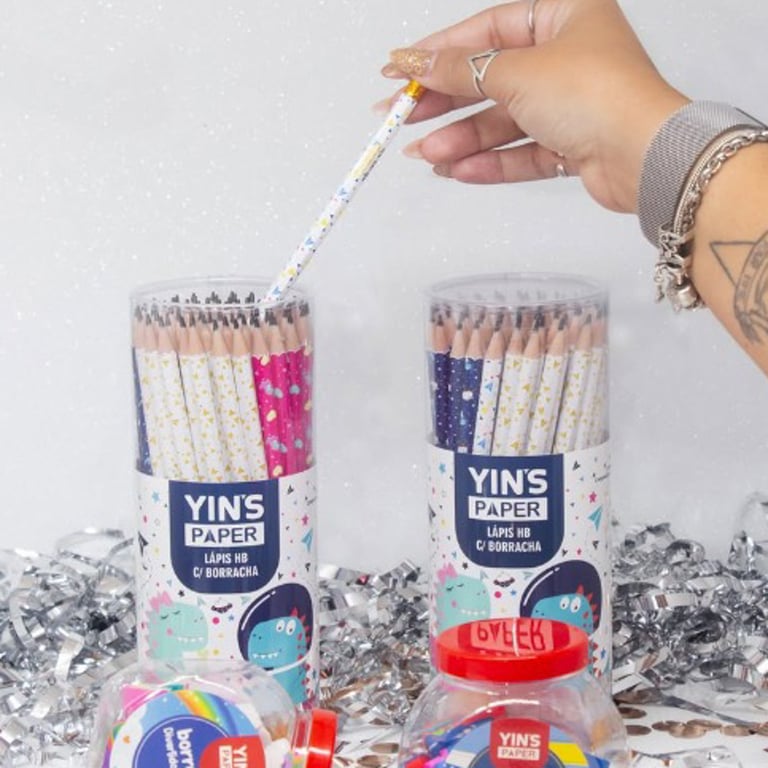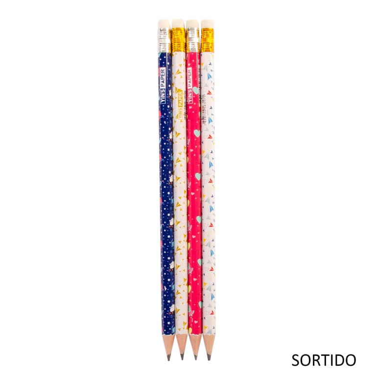 LÁPIS HB PRETO SEXTAVADO COM BORRACHA DECORADO