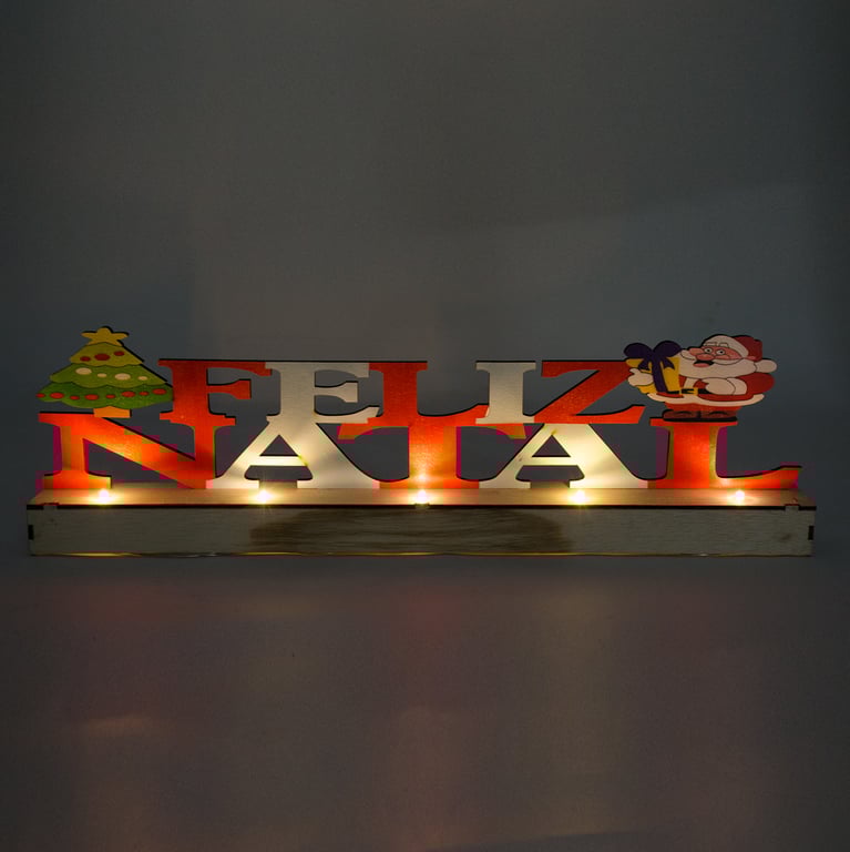 LETREIRO FELIZ NATAL 12X45 CM COM LEDS