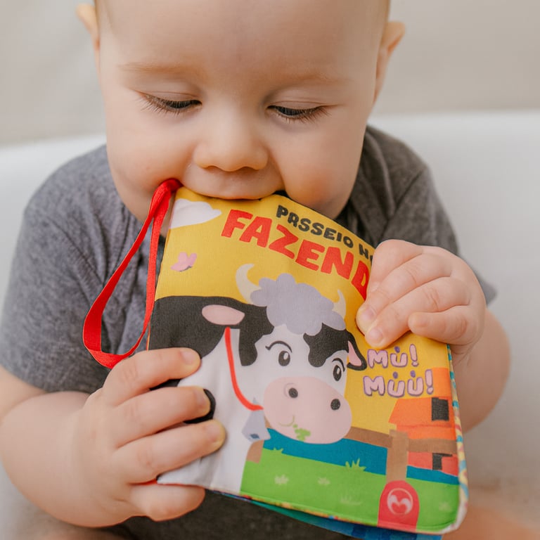 LIVRO DE PANO 13,5X13,5 CM 8 PÁGINAS PASSEIO NA FAZENDA