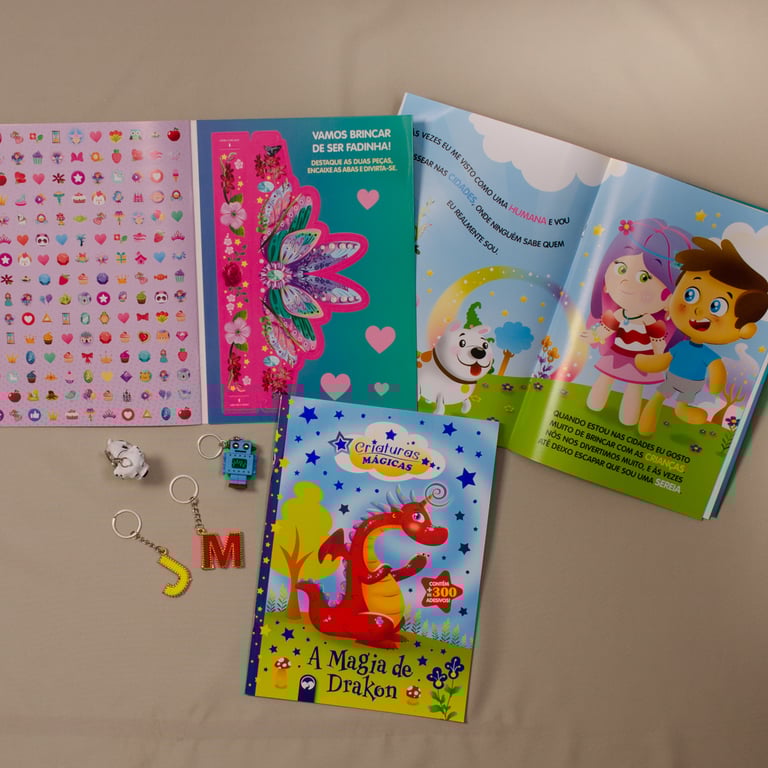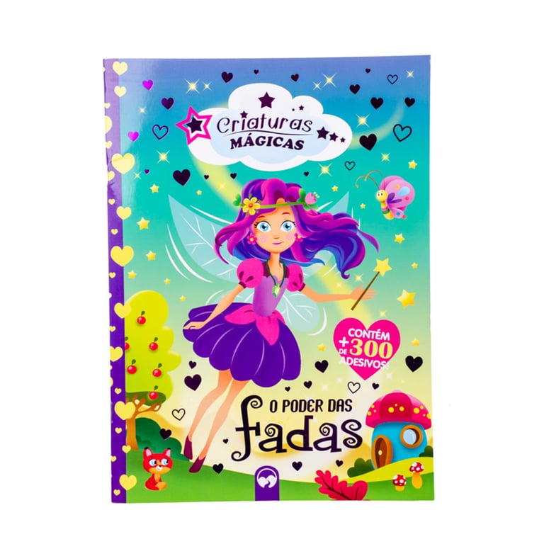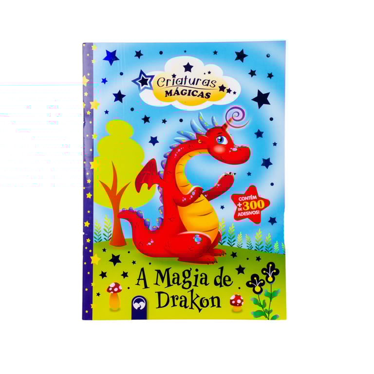LIVRO LEITURA 29X21 CM CRIATURAS MÁGICAS 16 PÁGINAS COM ADESIVOS