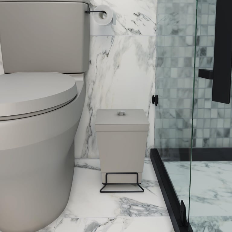 Composição LIXEIRA EM PLÁSTICO E SUPORTE EM AÇO CROMADO.