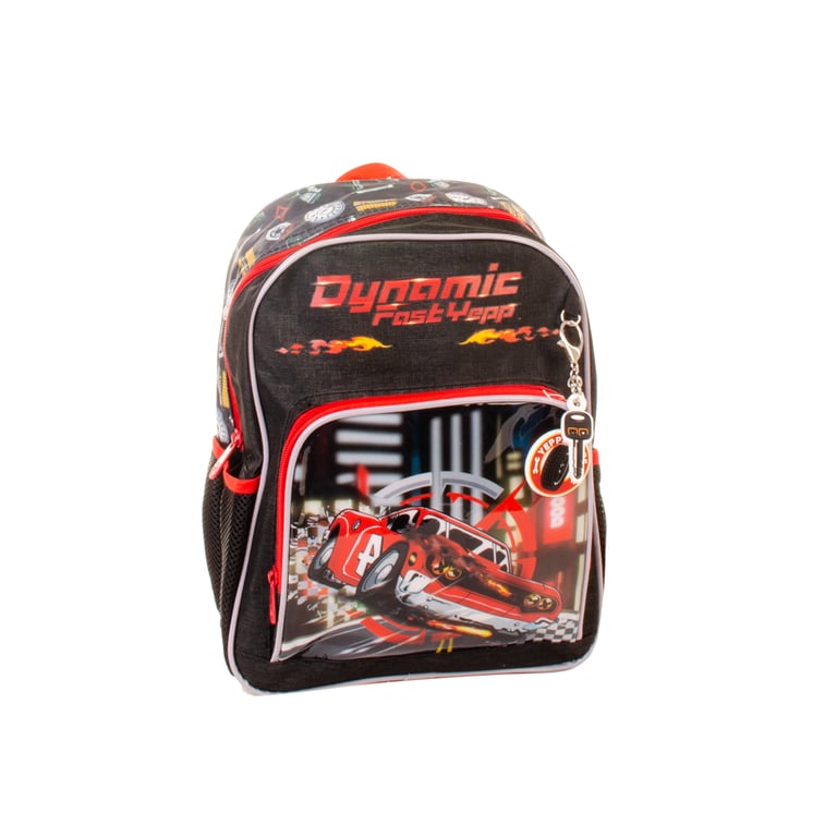 MOCHILA INFANTIL 33X25X13 CM CARRO COM CHAVEIRO DE CHAVE E PNEU