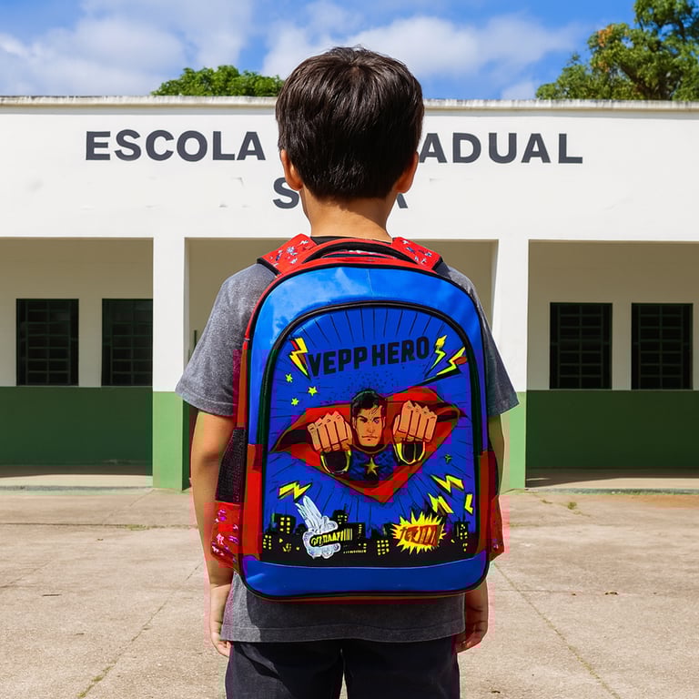 MOCHILA INFANTIL 38X30X13 CM SUPER HERÓI 3D RELEVO