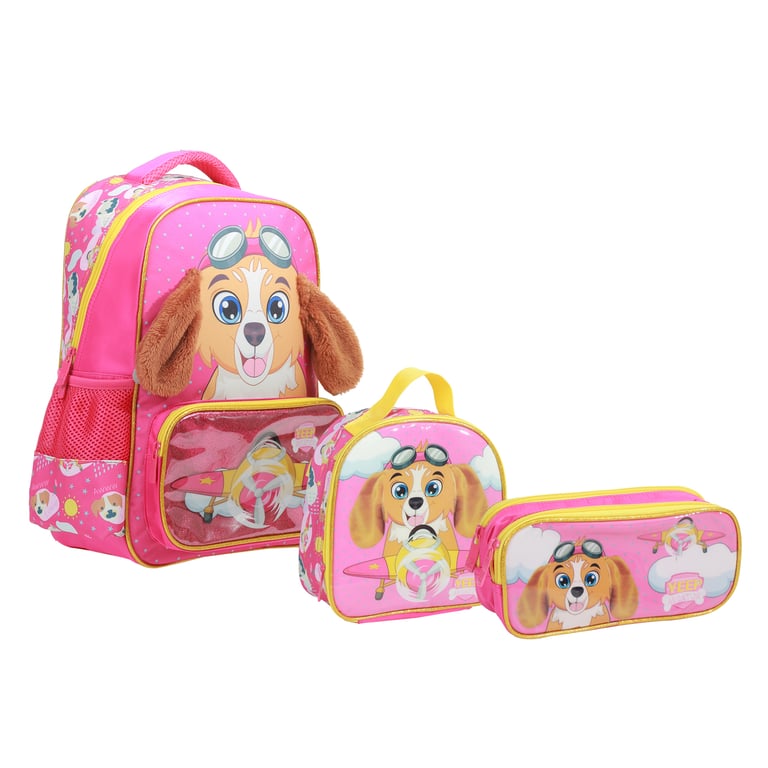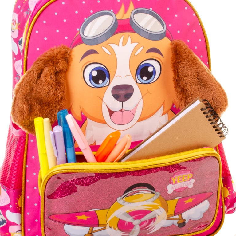 MOCHILA INFANTIL 40X30X16 CM CACHORRO E AVIÃO