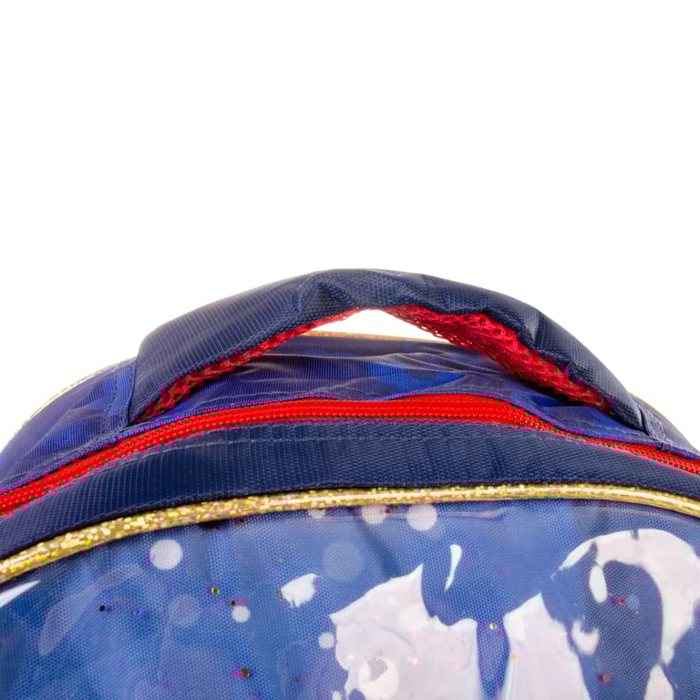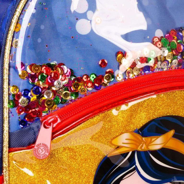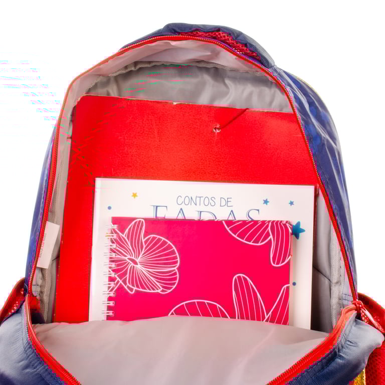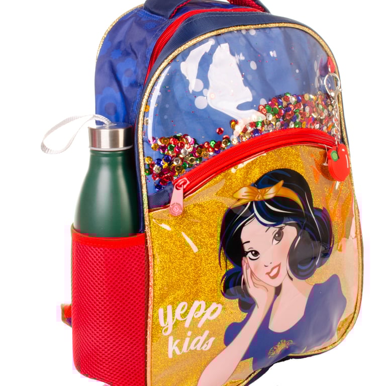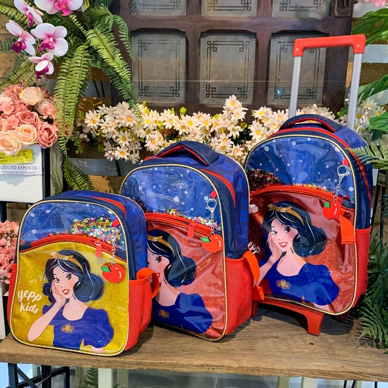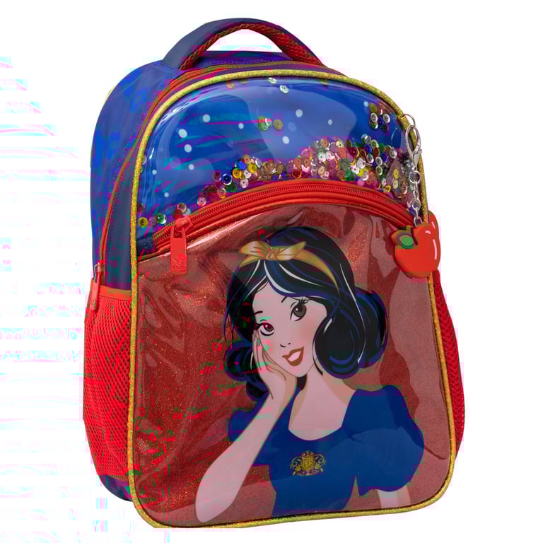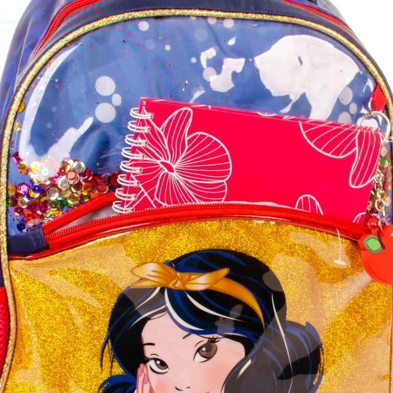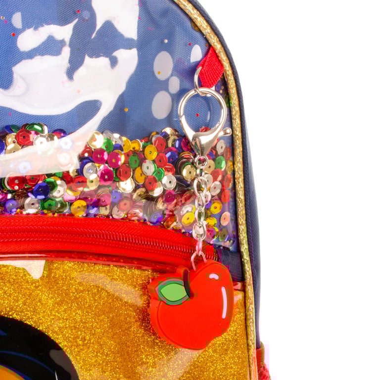 MOCHILA INFANTIL 41X30X12 CM MENINA COM CHAVEIRO DE MAÇÃ E LANTEJOULA