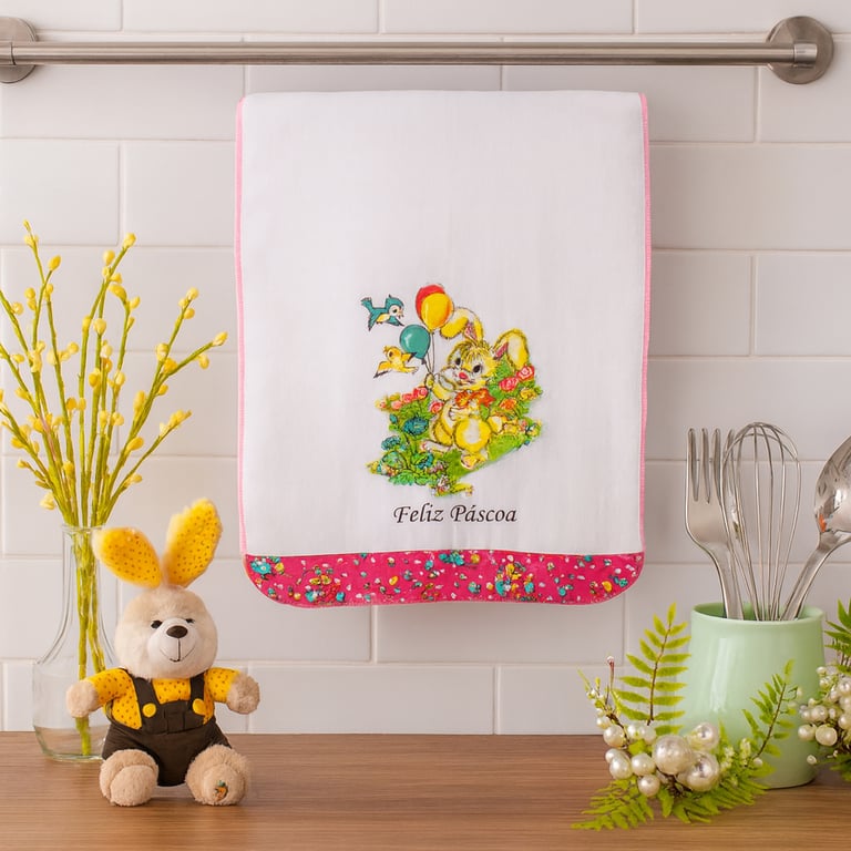 PANO COZINHA 67X43 CM PÁSCOA COM BARRA ESTAMPADA
