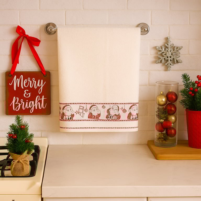 PANO COZINHA 70X45 CM NATAL ATOALHADO CREME