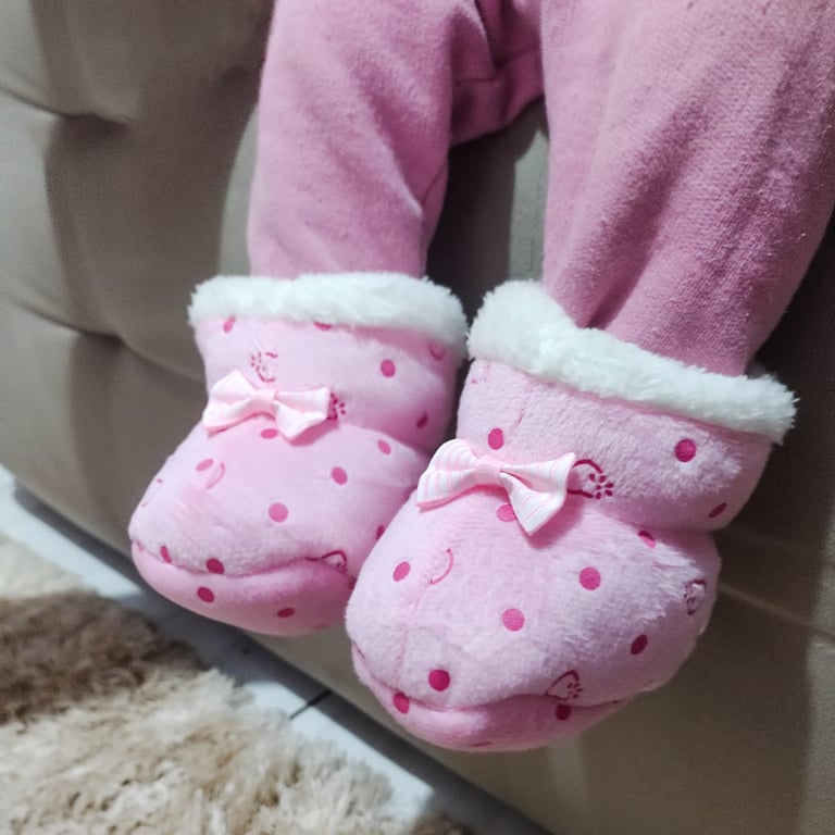 PANTUFA / BOTA BEBÊ 10X10 CM COM LAÇO