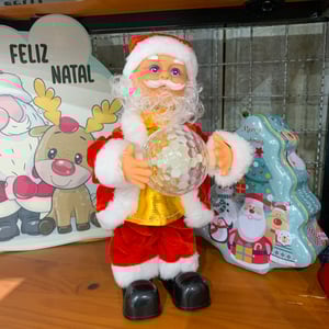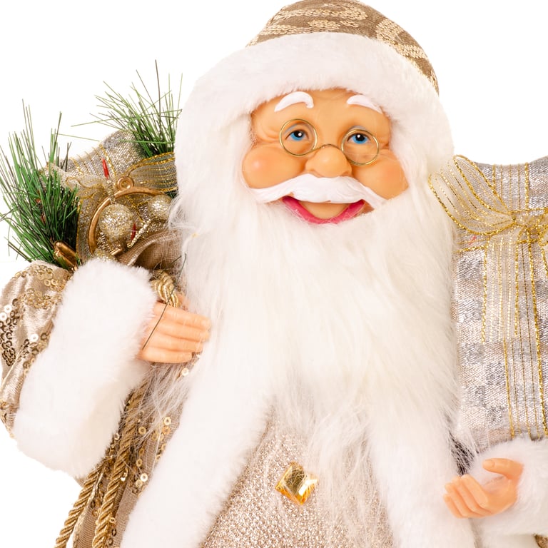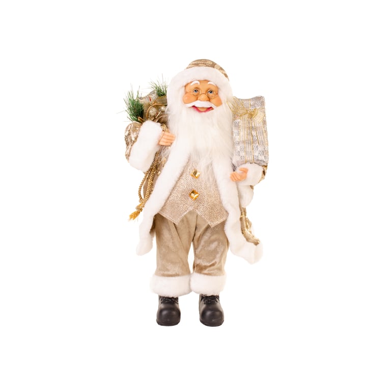 PAPAI NOEL 40 CM EM PÉ CASACO COM LANTEJOULAS CHAMPAGNE