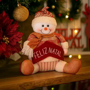 PAPAI NOEL / BONECO DE NEVE 18X10X5 CM VERMELHO XADREZ