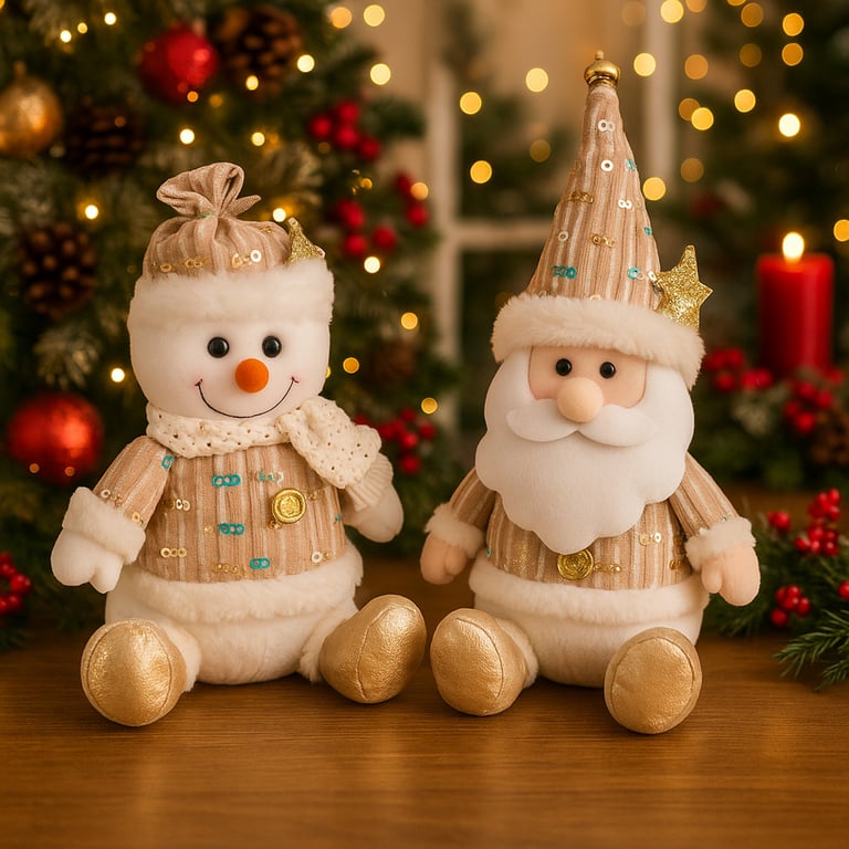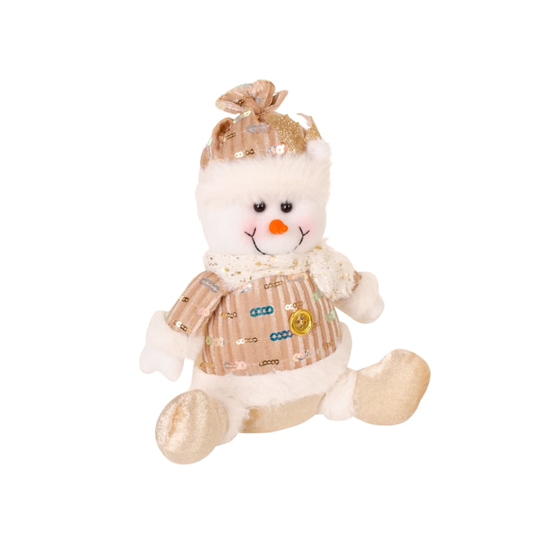PAPAI NOEL / BONECO DE NEVE 25 CM BEGE SENTADO COM PESO