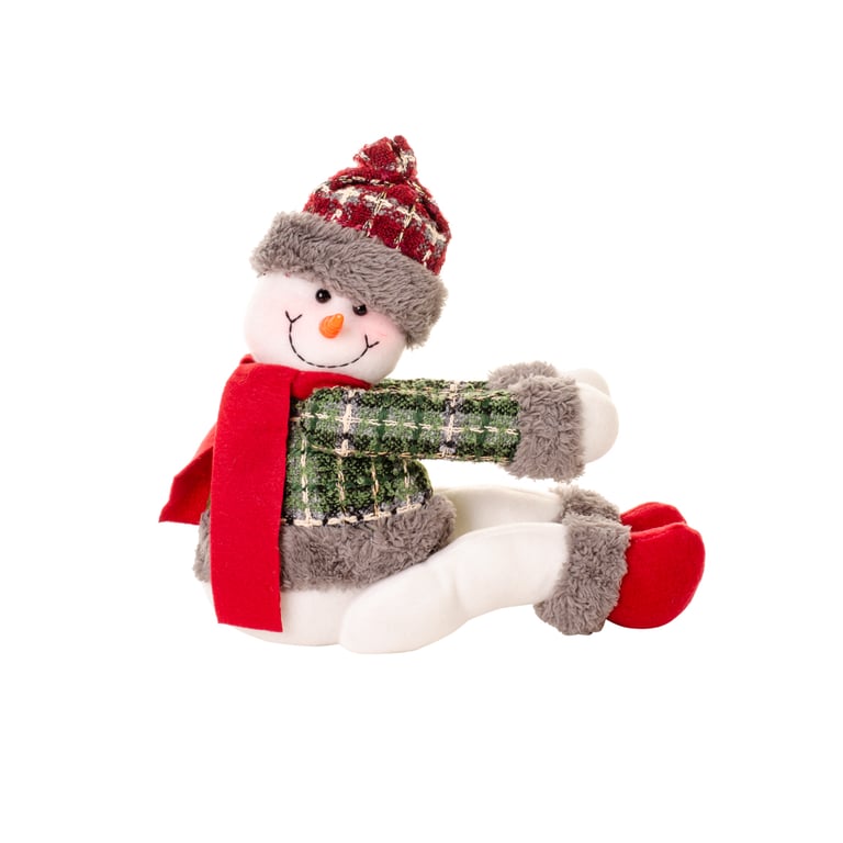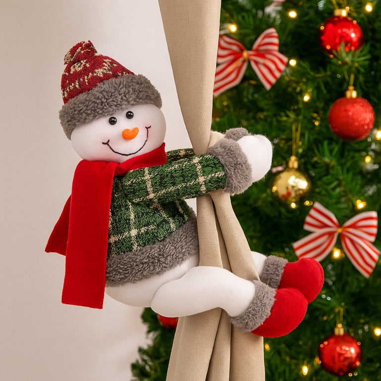 PAPAI NOEL / BONECO DE NEVE 37X20 CM AGARRADO BARRA CINZA COM VELCRO