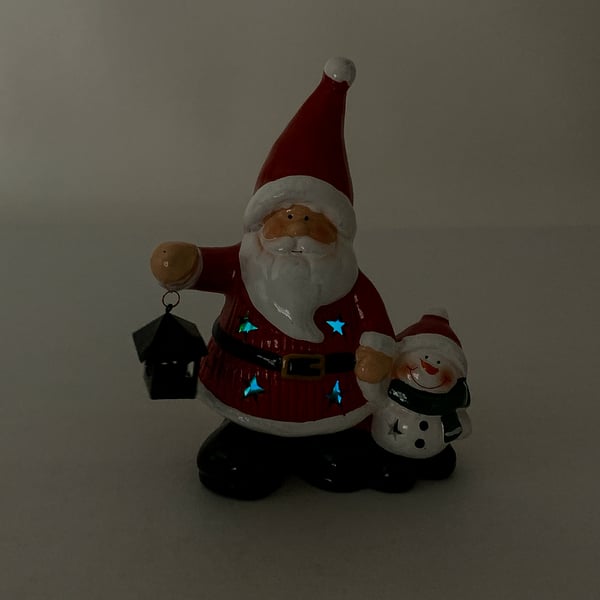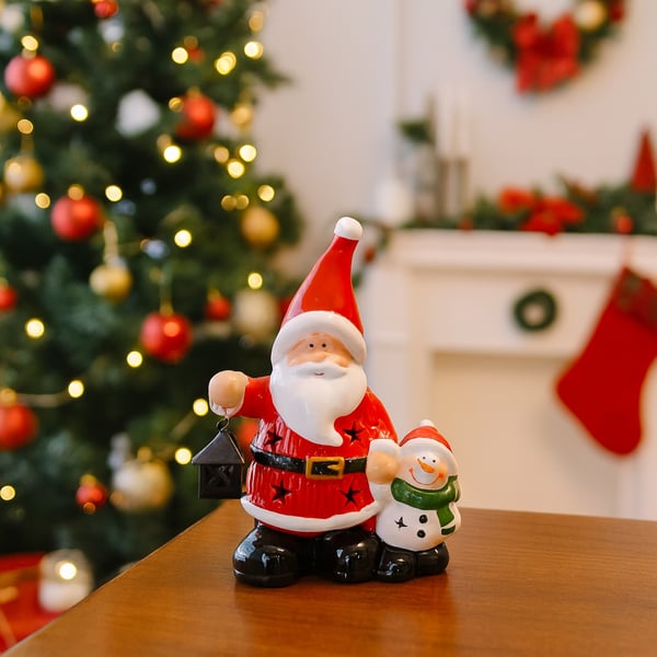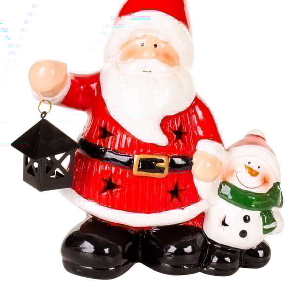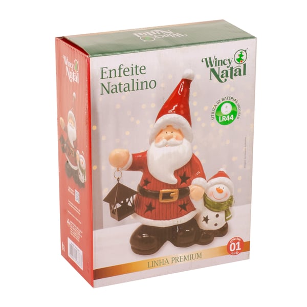 PAPAI NOEL E BONECO DE NEVE CERÂMICA 25X18X10 CM COM LED COLORIDO
