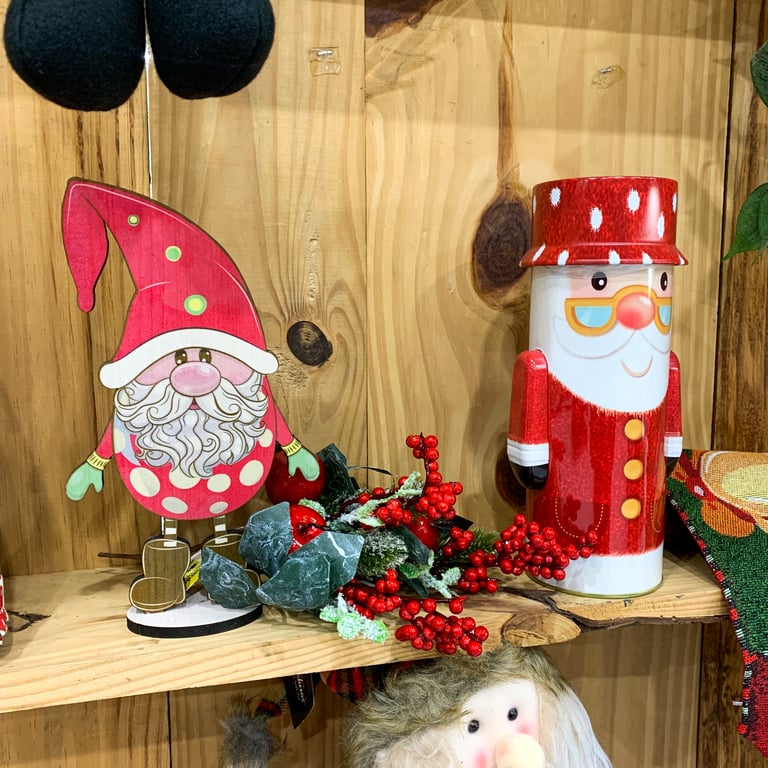 PAPAI NOEL MADEIRA 24X13X5 CM COM ROUPA POÁ
